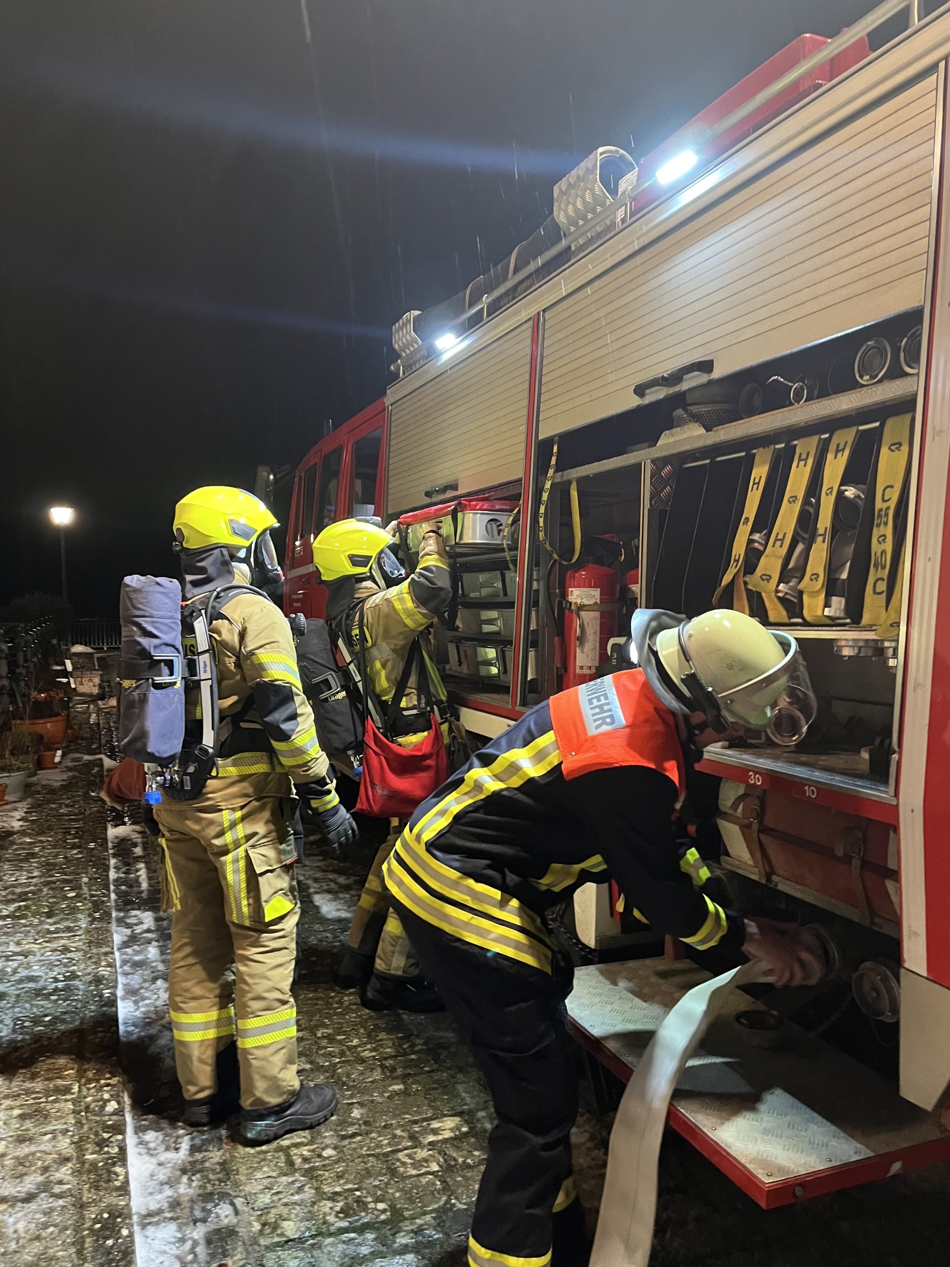 Das Übungsstichwort bei unserer ersten Übung im neuen Jahr lautete: Kellerbrand, Familie mit Kindern, Personenanzahl unbekannt.