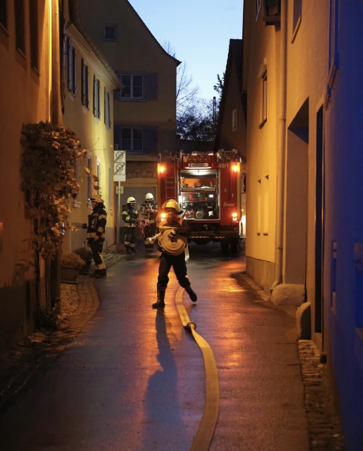Geübt wurde ein ausgedehnter Brand mit vermissten Personen auf einem kleinen Hof inmitten unseres Altorts. Besonders schwierig gestaltete sich die allgemein enge Bebauung im Altort, sowie auch die schlechte Wasserversorgung. Durch lange Schlauchstrecken zu den wasserführenden Fahrzeugen konnte einiges an Zeit gewonnen werden. Die verletzten, teils bewusstlosen Personen konnten zügig gerettet und an der Sammelstelle übergeben werden.