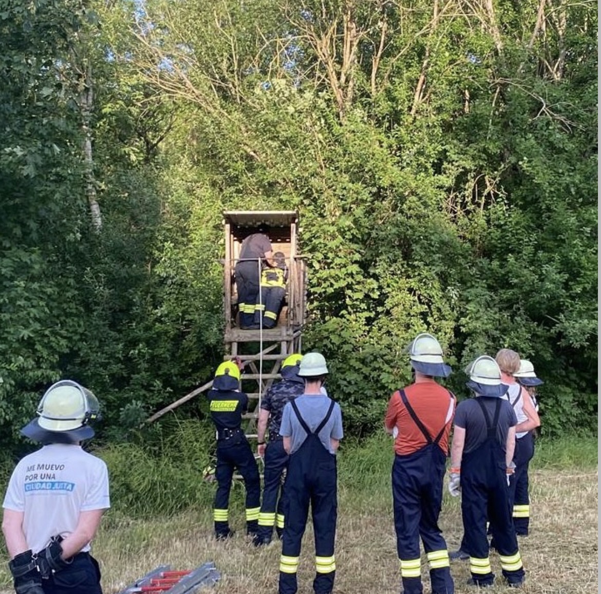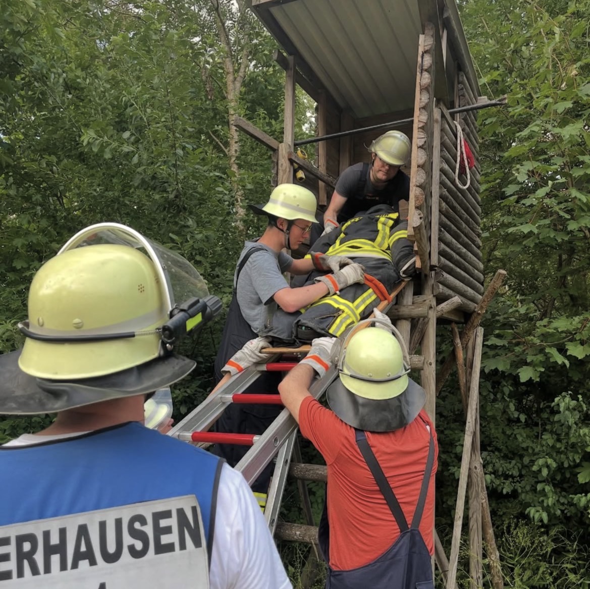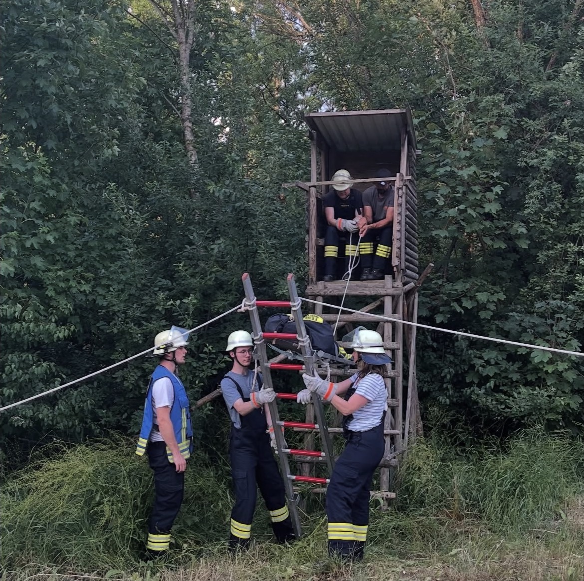 Bei unserer heutigen Übung probierten wir uns an verschiedenen Methoden, eine bewusstlose Person von einem Jägerstand zu retten.